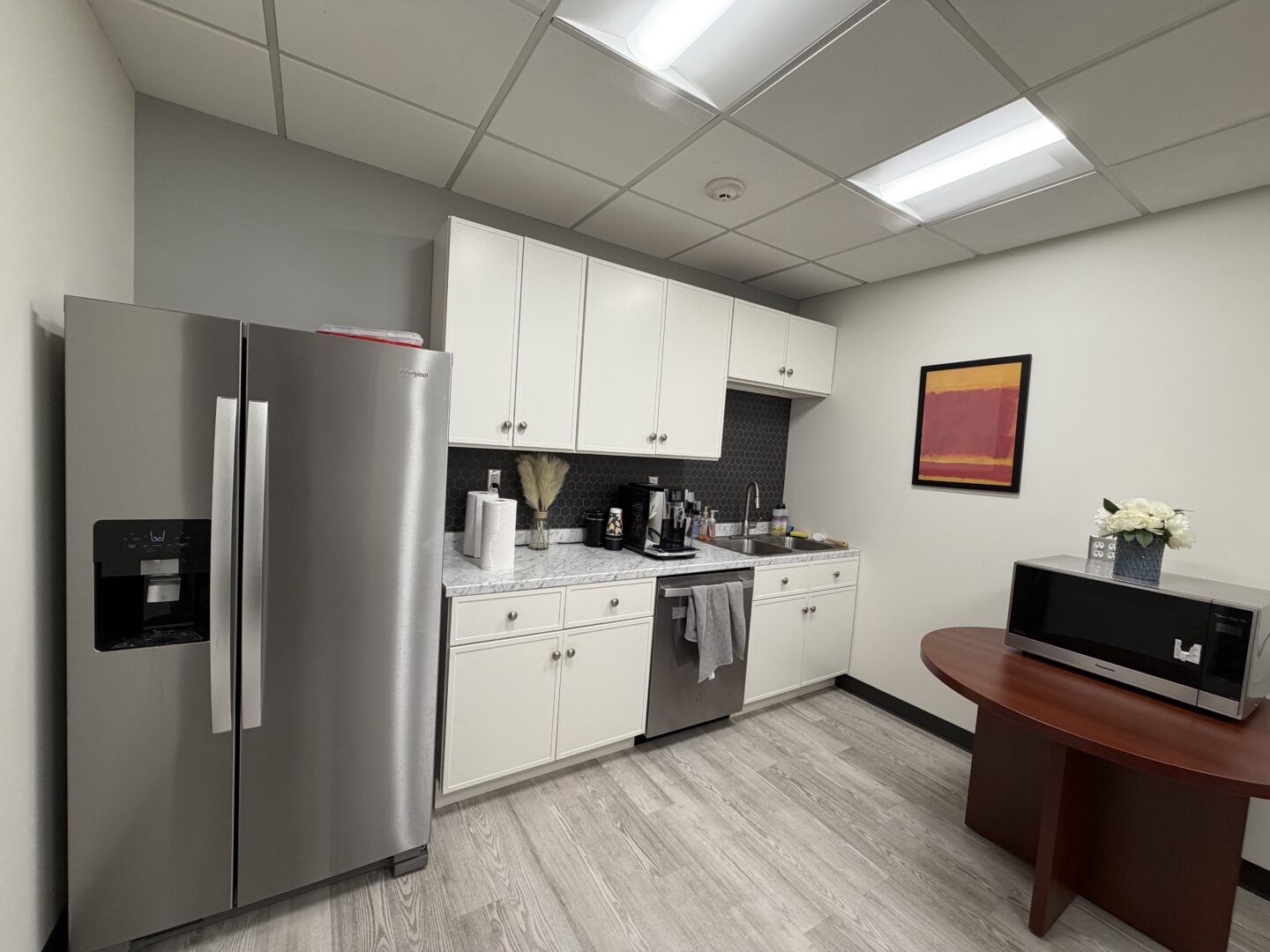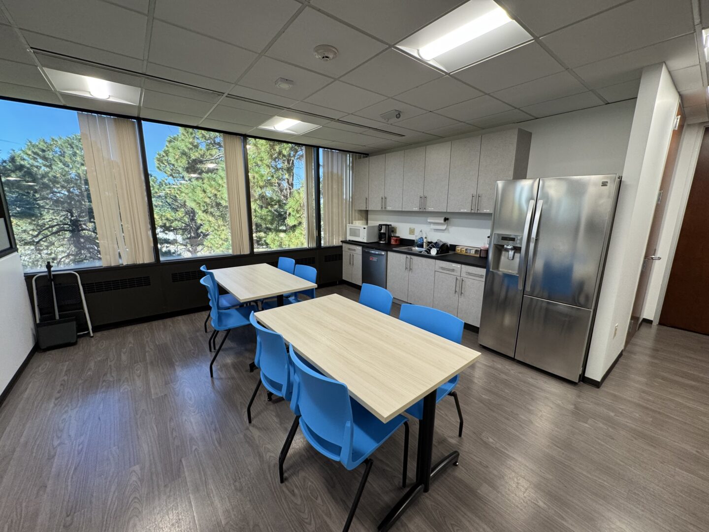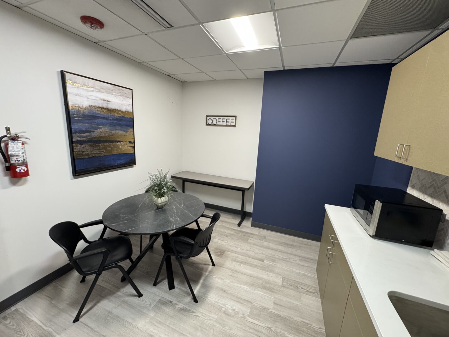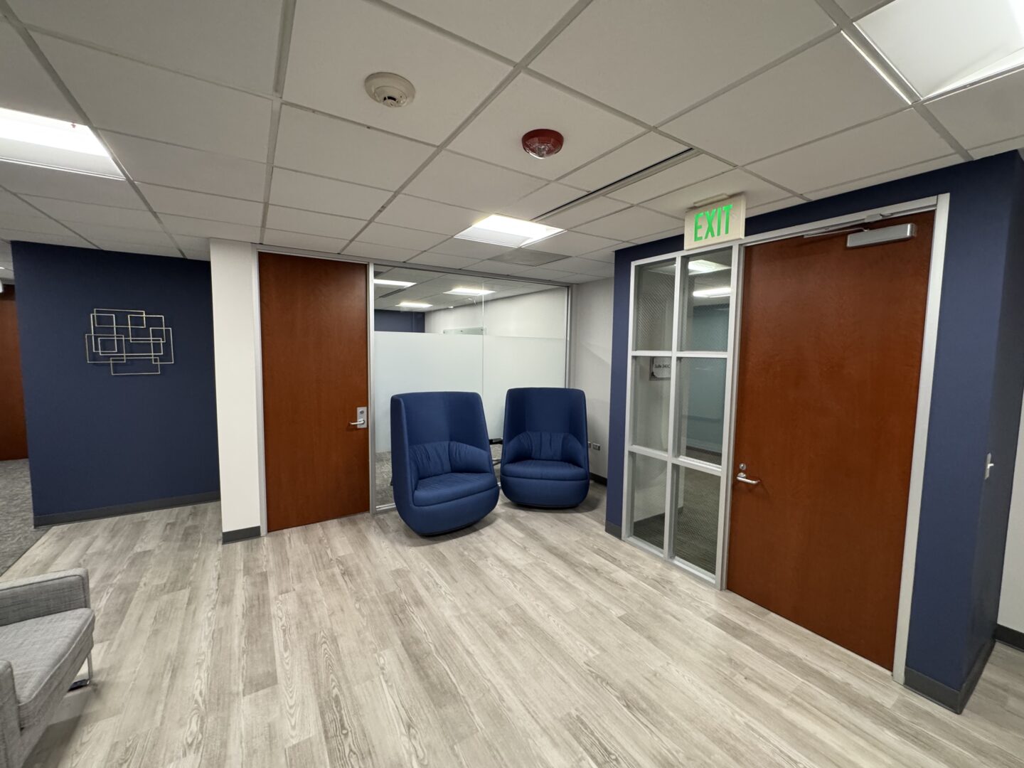 Top floor corner suite with plenty of natural light, a conference room, kitchen, four offices, two collaborative team rooms, an open bullpen for cubicles or work desks, cabinets for file storage, and a welcoming reception!