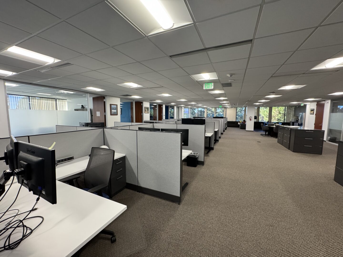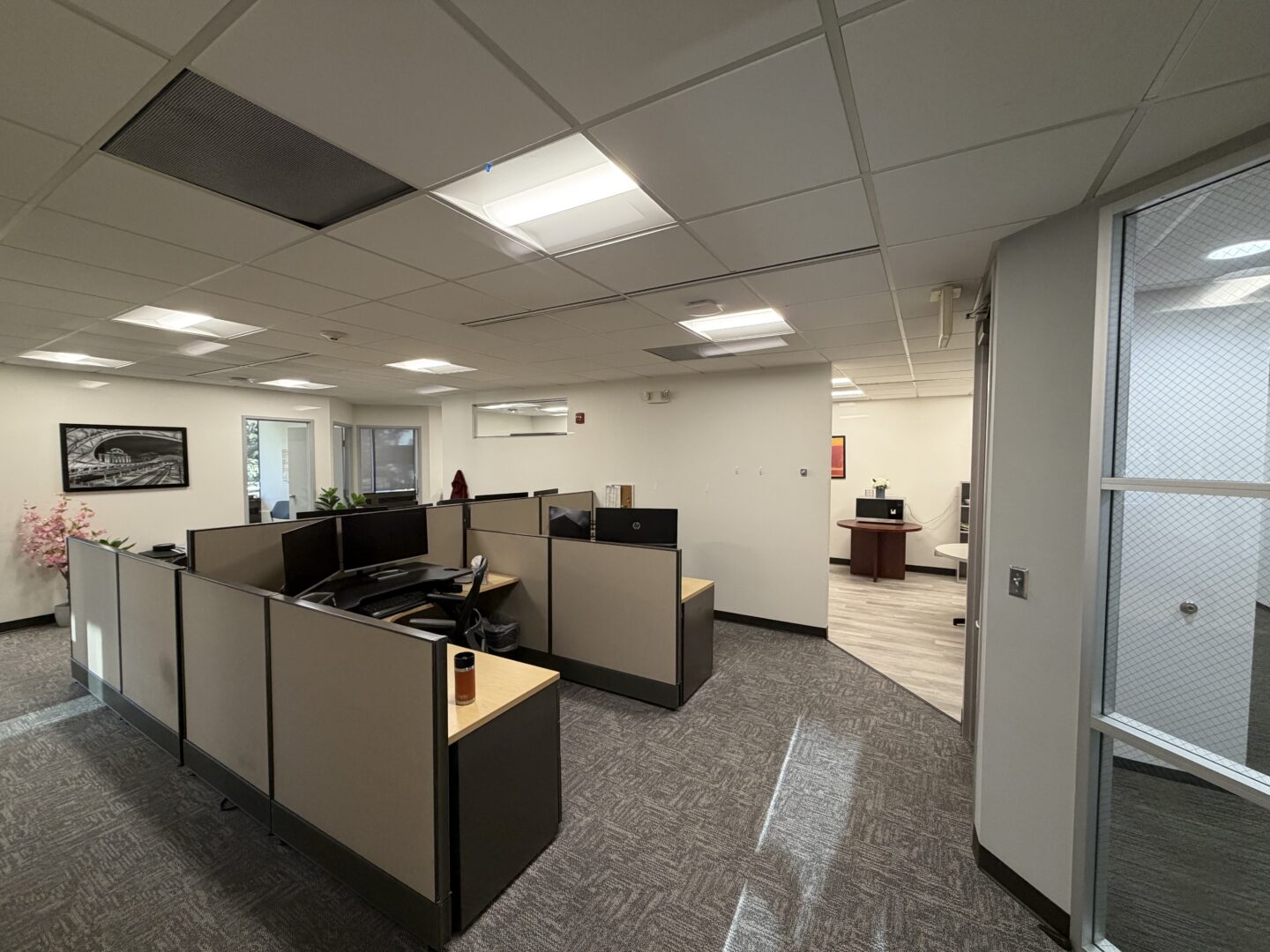 Mid-sized suite featuring four private offices, a conference room, bullpen for cubicles or reception, kitchen, and additional open area. Office may come furnished if desired. Available within 30-60 days! |